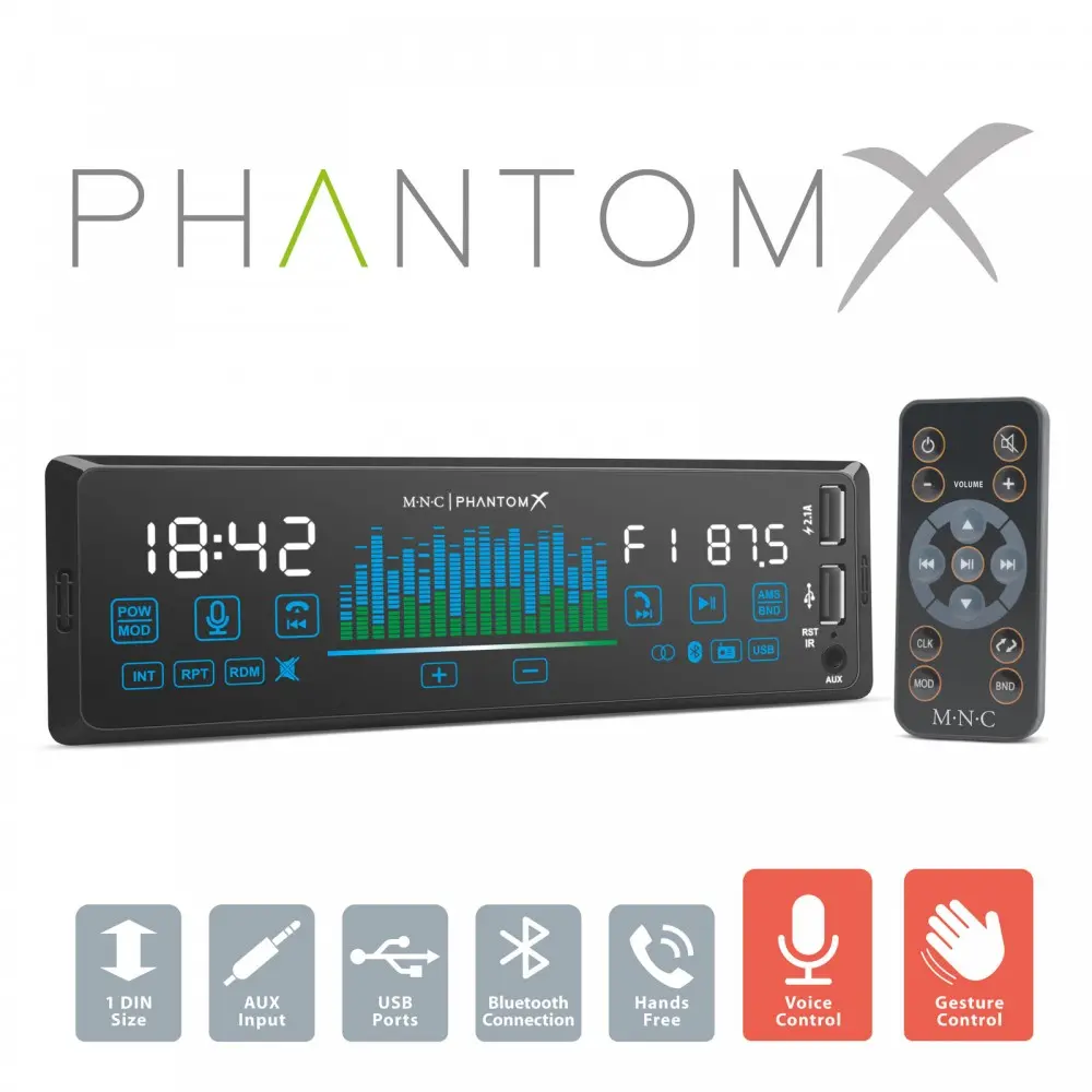 Autórádió, fejegység "PhantomX" - 1 DIN - 4 x 50 W - gesztusverzélés - BT - MP3 - AUX - USB