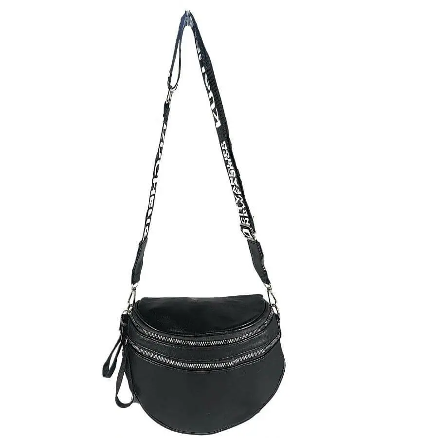 Divatos dupla cipzáros fekete oldaltáska