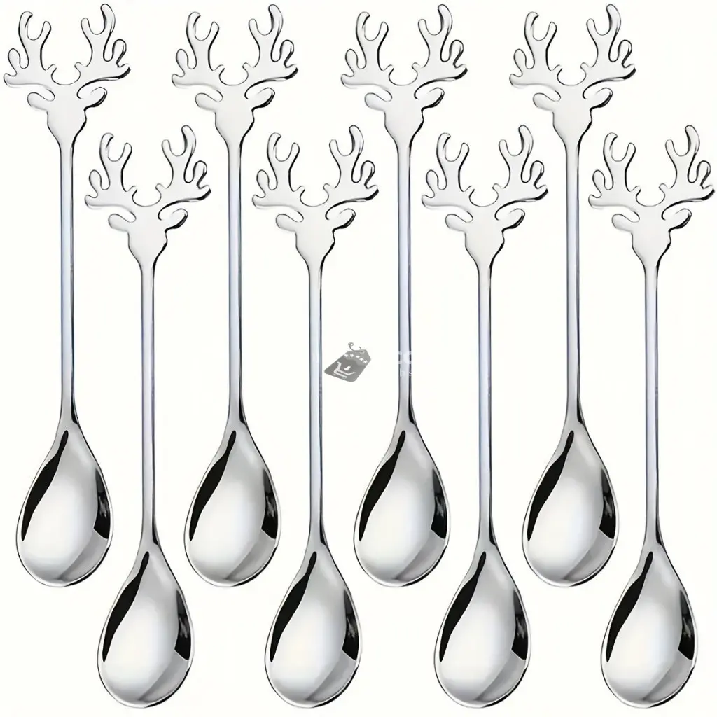 Elegáns rénszarvas agancs dizájn rozsdamentes acél kanálkészlet - 8 részes ezüst evőeszköz szett